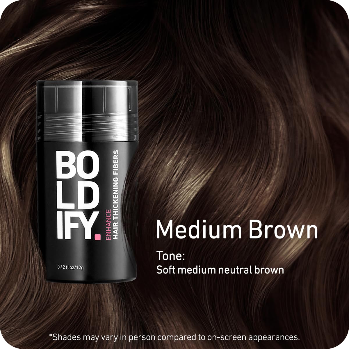BOLDIFY Hair Fibers for Thickening Hair Undetectable & Natural - 12g Bottle - Completely Conceals Hair Loss in 15 Sec - Hair Thickener & Topper for Fine Hair for Women & Men- MEDIUM BROWN.