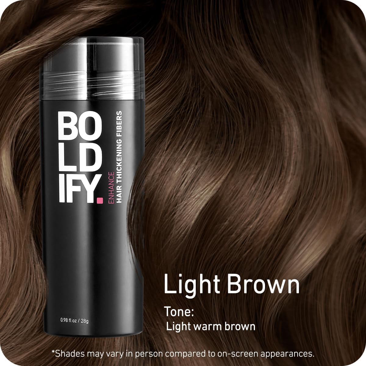 BOLDIFY Hair Fibers for Thickening Hair Undetectable & Natural - 28g Bottle - Completely Conceals Hair Loss in 15 Sec - Hair Thickener & Topper for Fine Hair for Women & Men- LIGHT BROWN.