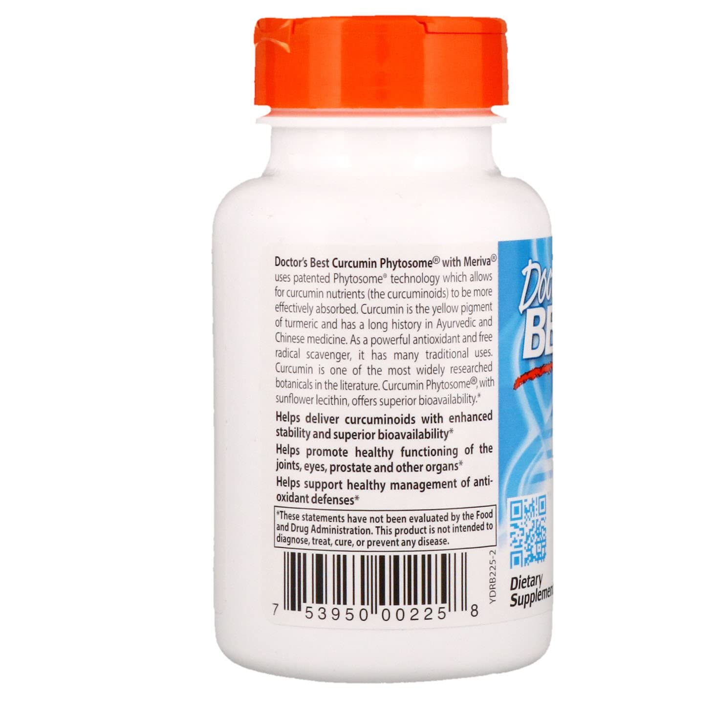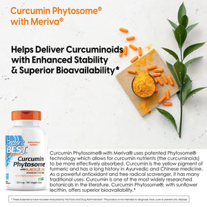 Doctor's Best Curcumin Phytosome® with Meriva® uses patented Phytosome® technology which allows for curcumin nutrients (the curcuminoids) to be more effectively absorbed. Curcumin is the yellow pigment of turmeric and has a long history in Ayurvedic and Chinese medicine. As a powerful antioxidant and free radical scavenger, it has many traditional uses. Curcumin is one of the most widely researched botanicals in the literature. Curcumin Phytosome®, with sunflower lecithin, offers superior bioavailability.