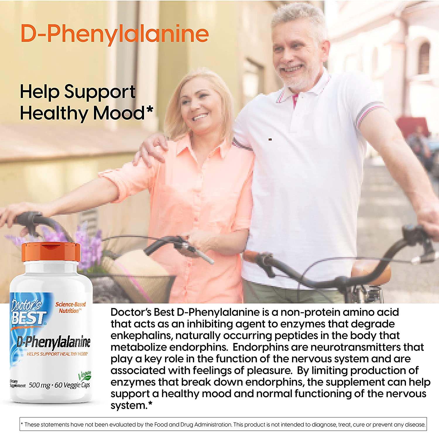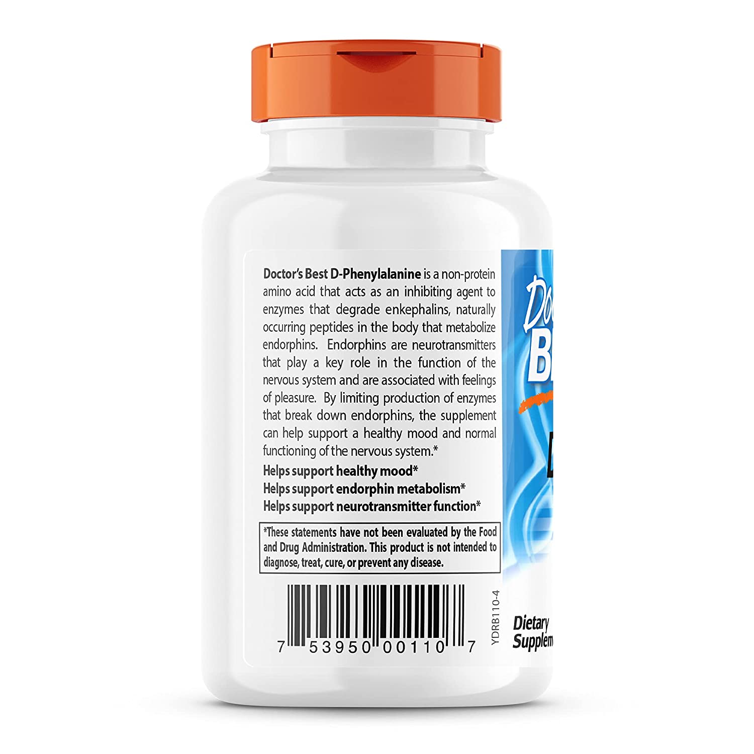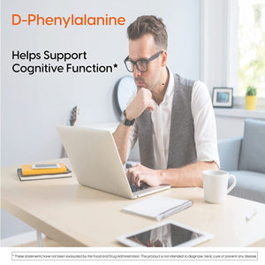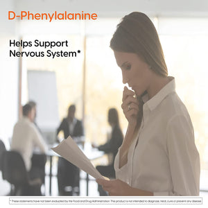 Doctor's Best D-phenylalanine is a non-protein amino acid that acts as an inhibiting agent to enzymes that degrade enkephalins, naturally occurring peptides in the body that metabolize endorphins. Endorphins are neurotransmitters that play a key role in the function of the nervous system and are associated with feelings of pleasure. By limiting production of enzymes that brake down endorphins, the supplement can help support a healthy mood and normal functioning of the nervous system.