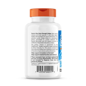 Doctor's Best Extra Strength Ginkgo helps support memory and brain capacity. It also helps support healthy mitochondrial and nerve cell function. This premium quality Ginkgo biloba is a standardized extract, guaranteed to contain minimum 24% flavonol glycosides and 6% terpene lactones, as verified by independent laboratory analysis.