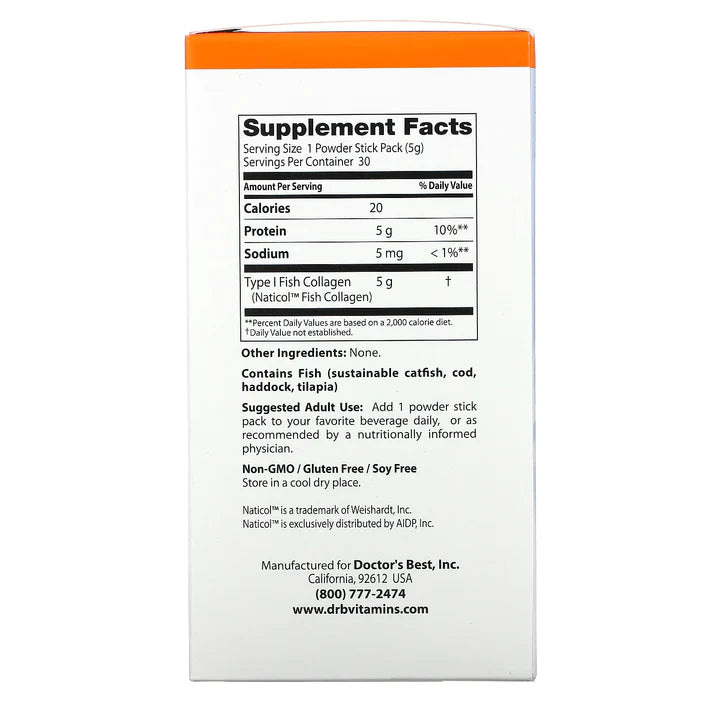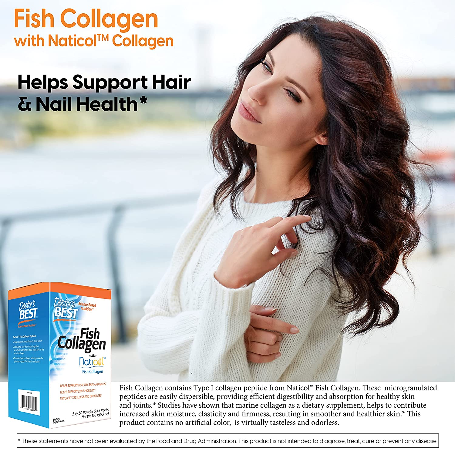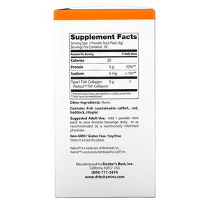Doctor's Best Fish Collagen with Naticol | 5g Type I Fish Collagen per serving | 30 Powder Stick Pack