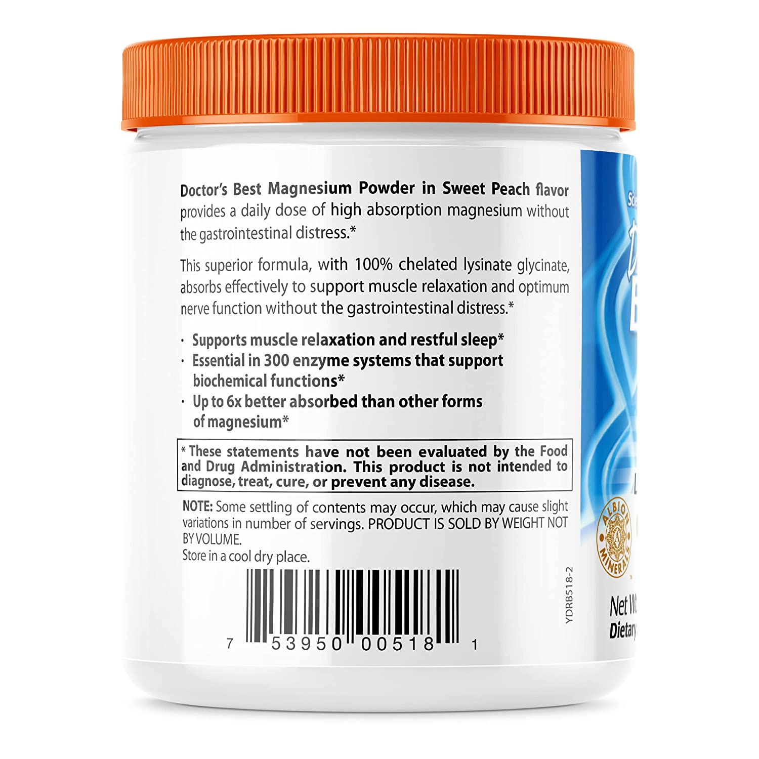 Doctor's Best High Absorption Magnesium Powder | Sweet Peach | 12.3 oz (347 g)