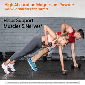 Relax with Doctor's Best Magnesium Powder in Sweet Peach flavor. This superior formula with 100% chelated lysinate glycinate, absorbs effectively to support muscle relaxation and optimum nerve function without the gastrointestinal distress.