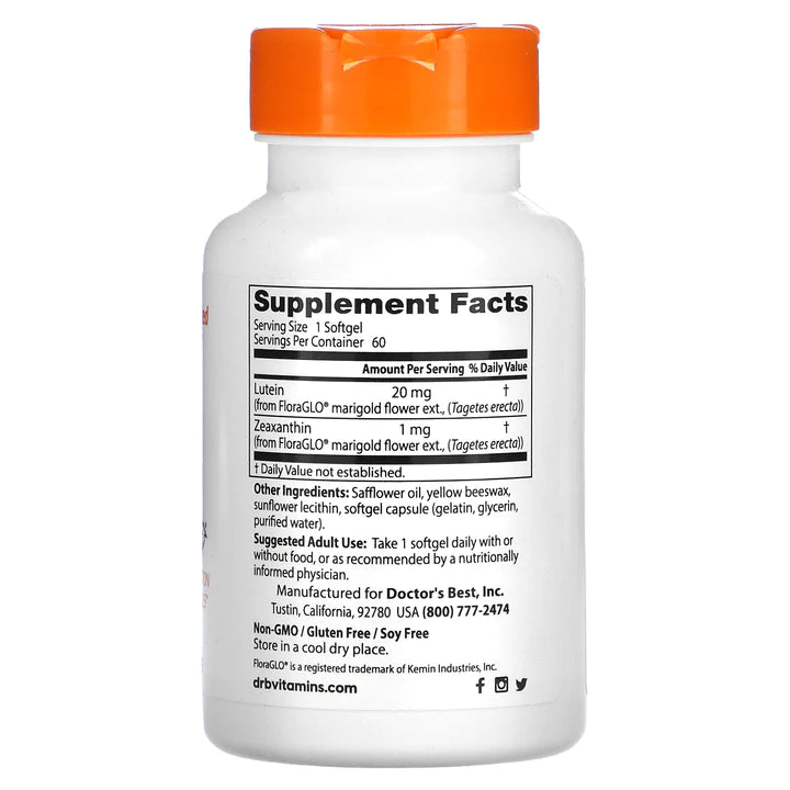 Doctor's Best Lutein with FloraGlo Lutein 20 mg per serving | 60 Softgels