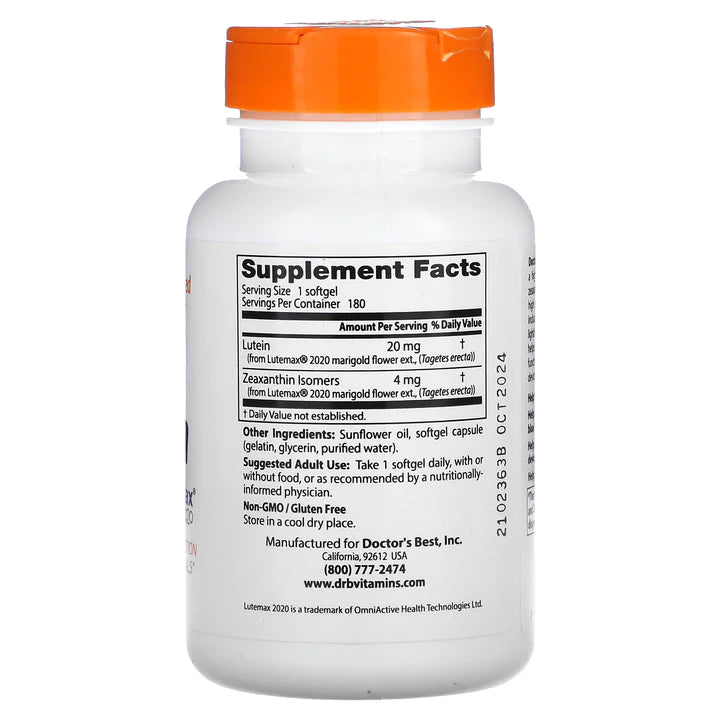 Doctor's Best Lutein with Lutemax 2020 | 20 mg per serving