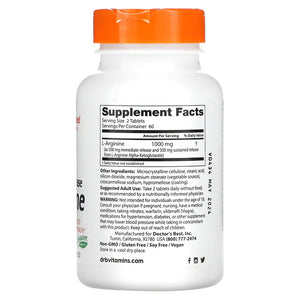 Doctor's Best Sustained Plus Immediate Release L-Arginine 500 mg per serving | 120 Bilayer Tablets