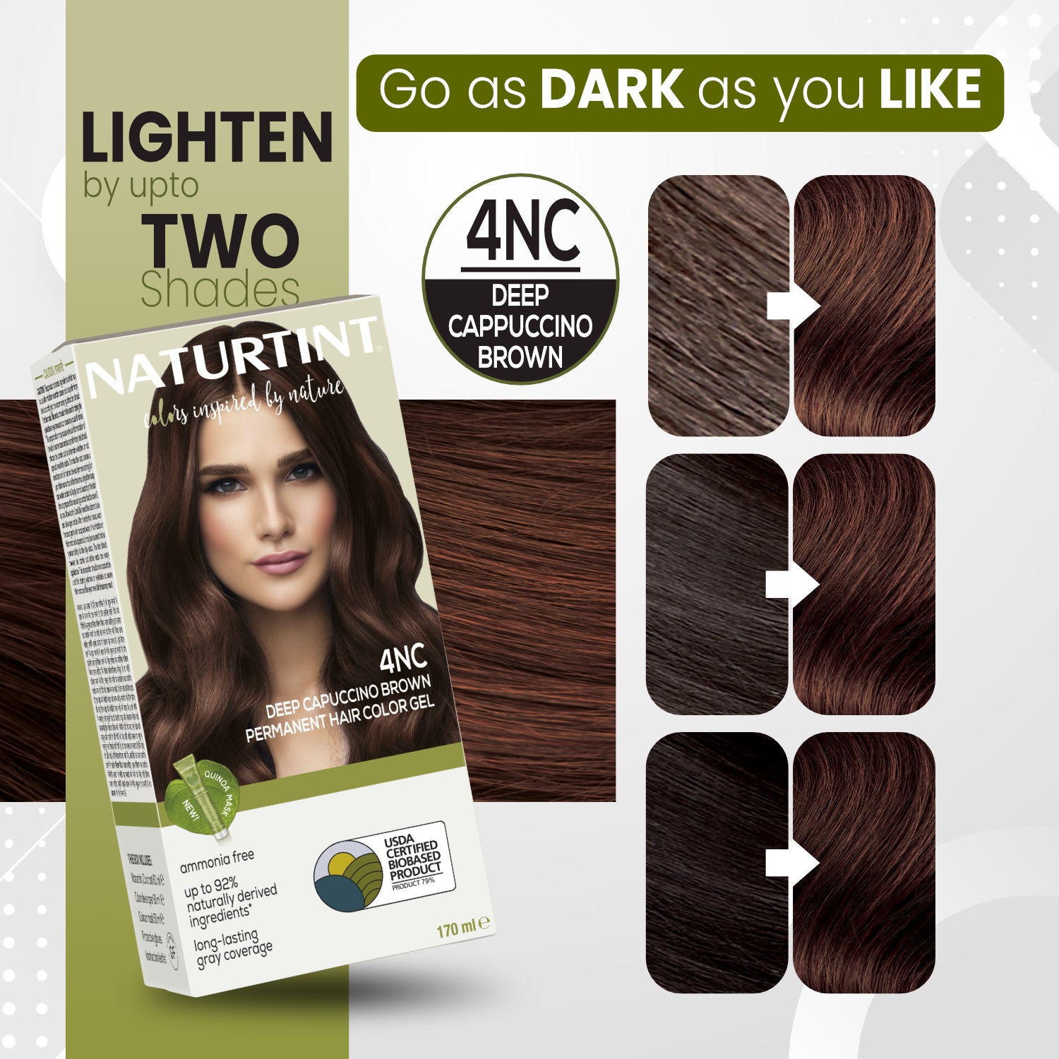 Naturtint Permanent Hair Color | Ammonia Free Hair Colour Gel | 92% natural ingredients | USDA Certified Biobased | 100% Grey Coverage Long Lasting Hair Colour Vegan 170 ml - 4NC Deep Cappuccino Brown