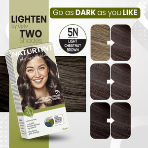 Naturtint Permanent Hair Color | Ammonia Free Hair Colour Gel | 92% natural ingredients | USDA Certified Biobased | 100% Grey Coverage Long Lasting Hair Colour Vegan 170 ml - 5N Light Chestnut Brown