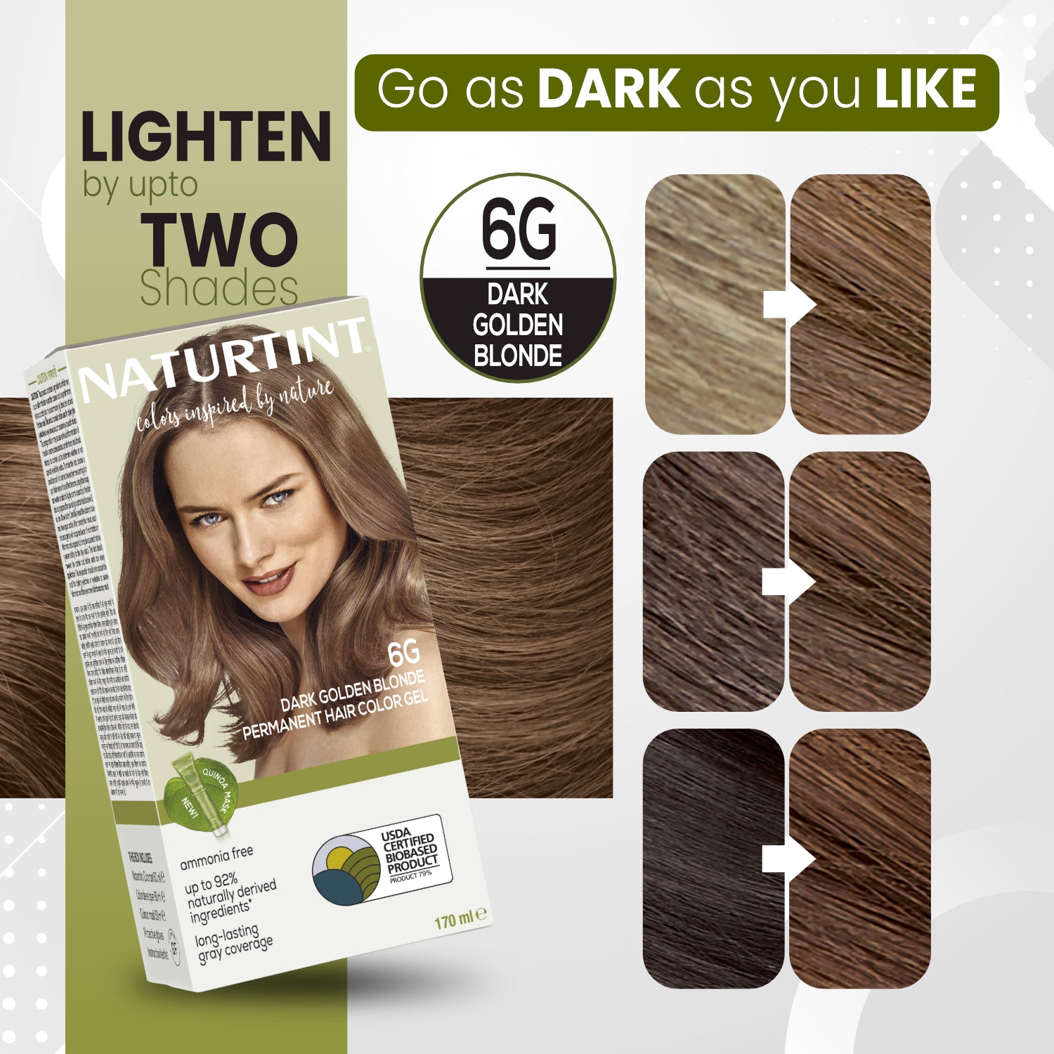 Naturtint Permanent Hair Color | Ammonia Free Hair Colour Gel | 92% natural ingredients | USDA Certified Biobased | 100% Grey Coverage Long Lasting Hair Colour Vegan 170 ml - 6G Dark Golden Blonde