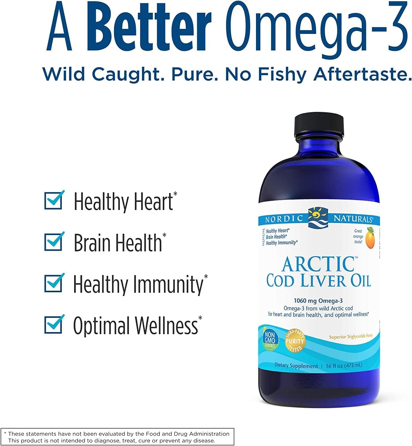 Our classic Arctic Cod Liver Oil has always been derived from 100% wild Arctic cod—no other fish oils or synthetic additives are ever used. Unlike fermented oils, our cod liver oils are manufactured to eliminate free fatty acids and prevent rancidity. They support the heart, brain, and nervous system, and promote optimal immune system function. Every batch of Nordic Naturals fish oils is tested by a third-party certified lab for environmental toxins, including heavy metals. All fish oils are in the triglyceride form and surpass the strictest international standards for purity and freshness.