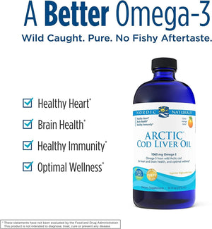 Nordic Naturals Arctic Cod Liver Oil | 1060 Mg Omega 3 Fish Oil EPA & DHA Supplement | Omega 3 Cod Liver Oil Liquid For Heart, Brain Health & Optimal Wellness