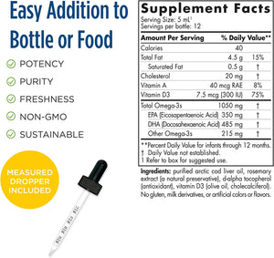 Nordic Naturals Baby’s DHA | 1050 mg Omega-3 + Vitamin D3 with Wild Artic Cod | Unflavored