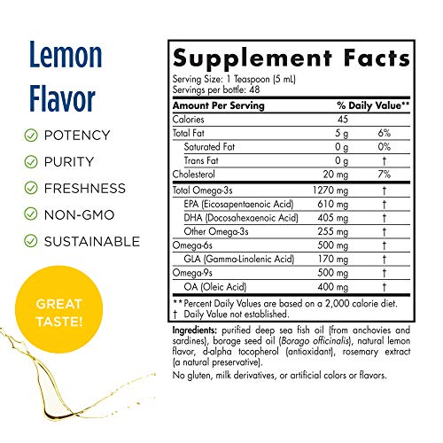 Nordic Naturals Complete Omega-3 1270 mg Fish Oil + 170mg GLA Borage Seed Oil Omega 6 & 9- Lemon Flavour