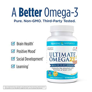Our most powerful oil yet. Ultimate Omega 2X features the highest-concentration omega-3 fish oil in triglyceride form (the form naturally found in fish), delivering superior absorption and maximum benefits. Every batch of Nordic Naturals fish oils is tested by a third-party certified lab for environmental toxins, including heavy metals. All fish oils are in the triglyceride form and surpass the strictest international standards for purity and freshness. Optimal health with 1000 mg of EPA and DHA in each soft gel, this powerful concentrate meets a broad range of nutritional needs. Ultimate Omega 2X offers support for heart, brain and joint health and is ideal for anyone looking for omega-3s in their most bio-available form.