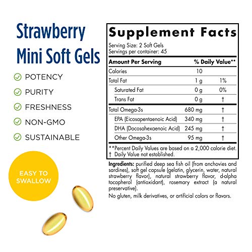 HIGH-POTENCY FORMULA- This omega 3 fish oil for kids formula offers a potent, kid-sized serving of EPA & DHA supplement in a strawberry-flavored mini softgel omega 3 gummies for kids that's easy to swallow or chew.